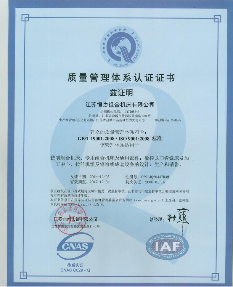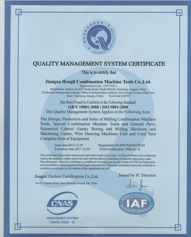 Hengli Quality Management System Certification